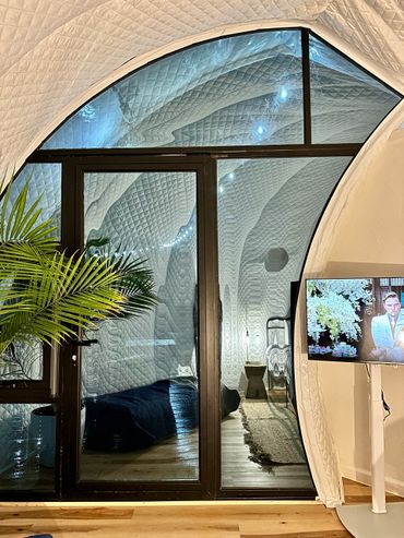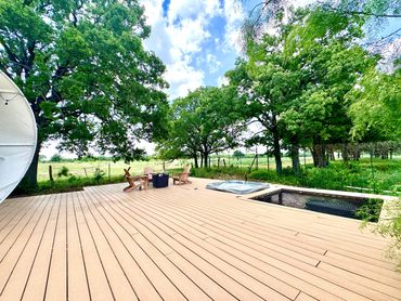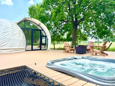 Reconnect with nature at this unforgettable and private escape on 33 acres. The most comfortable camping experience with the luxuries of a five star hotel. Sip wine in your hot tub, dry off on the custom hammock in the deck and get warm by the fire pit. Come inside for a rainfall shower and get ready for dinner and fun in town a few minutes away. Come back to a King bed, mini split air condition and a movie. Wake up with some coffee we provide and watch the sunrise. We have beautiful sunsets too.