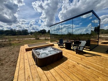 Step into luxury with Ursa Major, our spacious ÖÖD Mirror House designed to reflect the beauty of the Texas Hill Country. This sleek hideaway features a queen bed, chic kitchenette, dining space, Wi-Fi, and a smart TV for ultimate comfort. Outside, unwind on your private deck complete with a hot tub, fire pit, hammock, and lounge chairs — all with breathtaking vineyard views. Just minutes from Fredericksburg’s Main Street, Ursa Major is your perfect Hill Country escape.